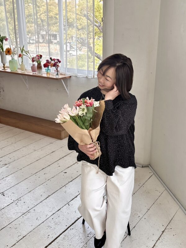 • お花に囲まれてプロフィール撮影会のメイクを担当|広島市のパーソナルメイクならPRIMAL+